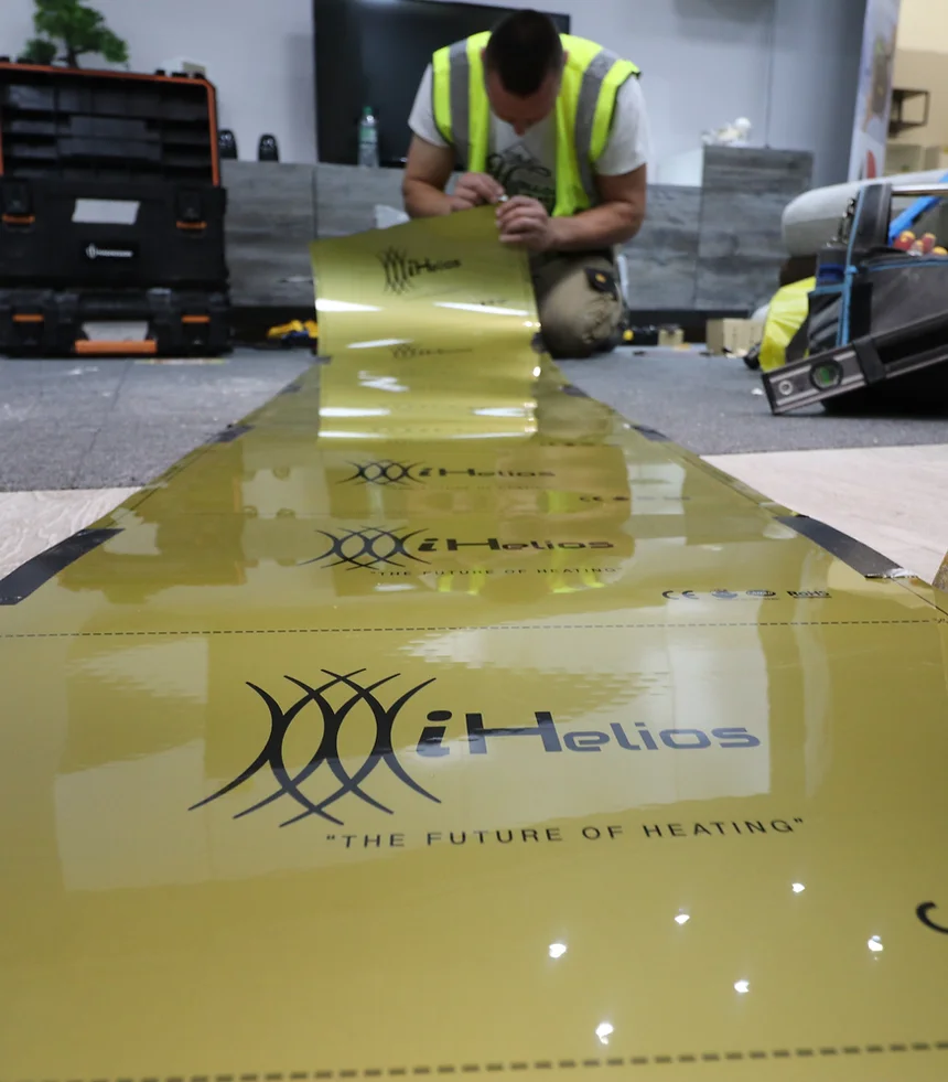 The iHelios Radiant heating is a patented wafer-thin heating film which can be placed within the ceiling, under floors, or in panels.